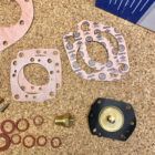 Kit d’entretien pour un carburateur Solex 40PAIO, tel qu’installé sur le Land Rover Série 2. Comprend toutes les rondelles, les joints, les membranes et les ressorts de la pompe d’accélération, la vanne à aiguille et la vis de contrôle du volume.