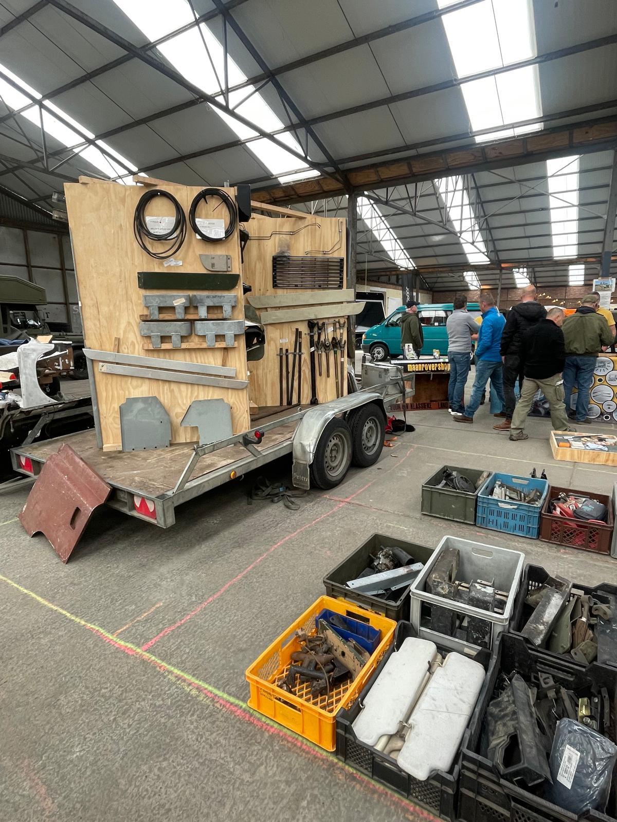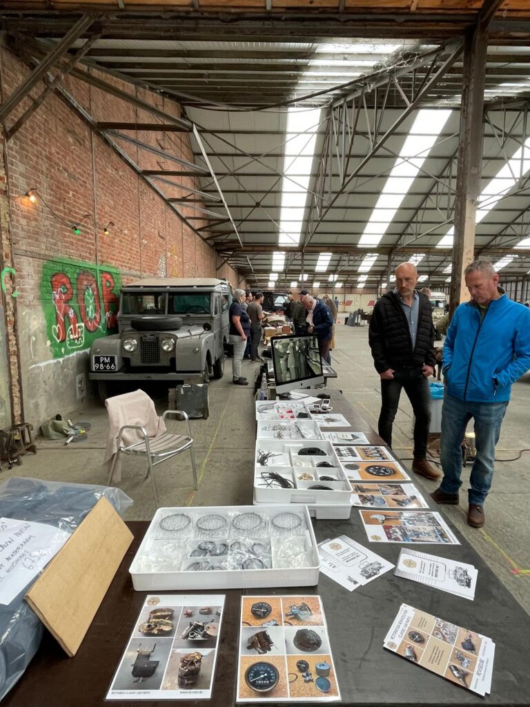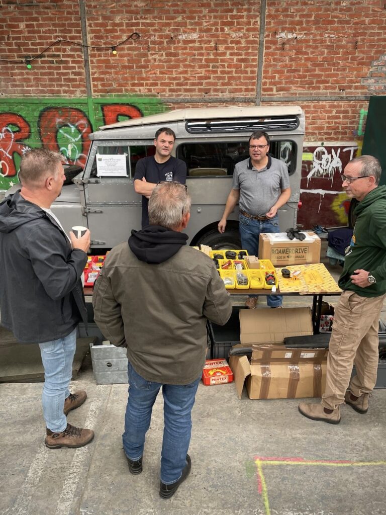 Tôt dimanche matin, des vendeurs de pièces détachées sont arrivés des Pays-Bas, d’Allemagne et de Belgique, où un nombre surprenant d’anciennes pièces de stock Minerva sont encore disponibles. Les premiers visiteurs ne tardèrent pas à arriver et, à la mi-journée, les hangars bourdonnaient de vendeurs, de négociants et de discussions interminables sur notre passion commune pour les vieilles Land Rovers. Des pièces manquantes ont été trouvées, des affaires ont été conclues, des conseils et des expériences ont été échangés. Les visiteurs ont examiné attentivement les véhicules exposés – ce n’est pas tous les jours que l’on peut étudier ces classiques de près – et ils ont souvent servi de matériel de référence précieux pour les projets en cours à la maison. Dès qu’un capot est ouvert, une foule semble se former !